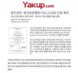 FSSC22000 인증 보도